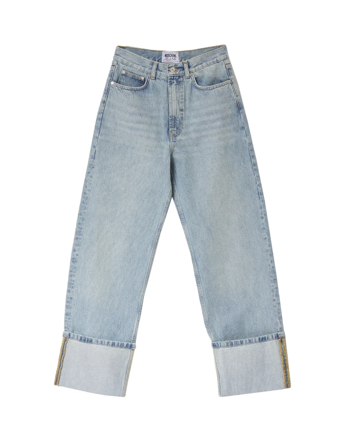 Обновите свой джинсовый образ с помощью этих джинсов Moschino RISVOLTO 14 OZ DENIM с высокой талией и прямым кроем. Модель имеет широкий низ, нашивку с изображением гор и логотип на заднем кармане. Высокая посадка, передние и задние карманы, вышитая нашивка на заднем кармане, широкий низ, потайная молния и застежка на пуговицу. Цвет: джинсово-синий. Изготовлены из 100% хлопка.