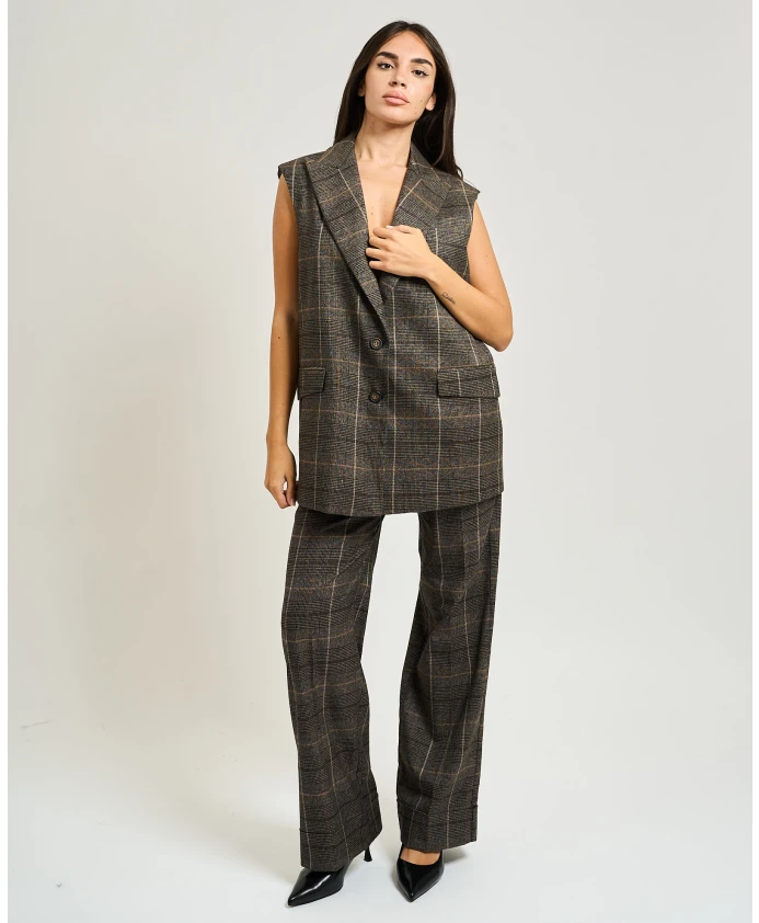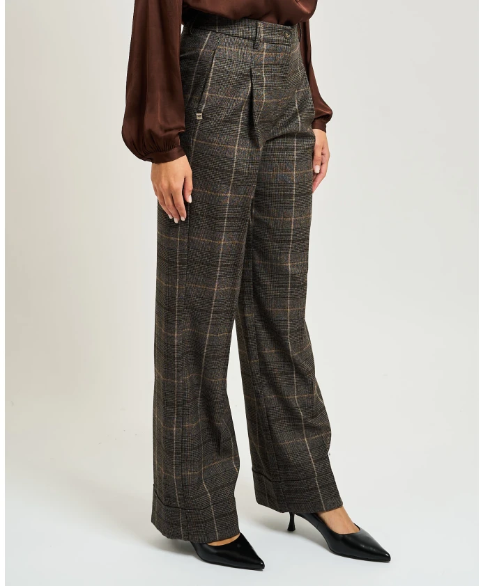 Широкие брюки Manila Grace сочетают в себе элегантность и свободный силуэт. С передними складками и подворотом, они идеально подходят для повседневной и офисной одежды. Ключевые особенности: Разноцветные | Полосатая ткань | Клетчатый узор | Приталенный крой | Передние складки | Подворот | В наличии жилет в тон (код G137PQMG603) | Размеры и посадка: Свободный крой | Прямой крой