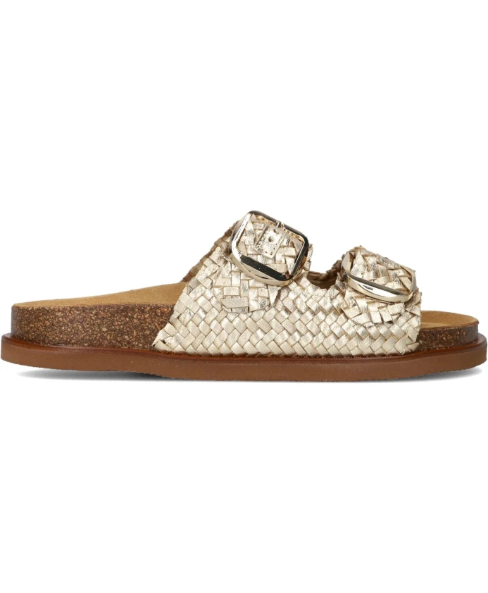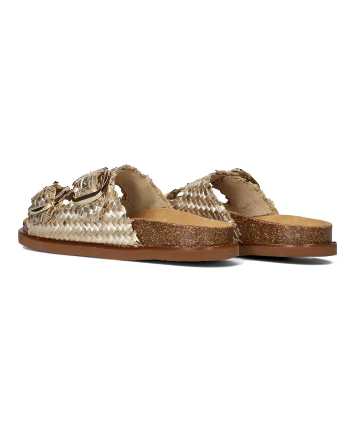 В этих элегантных домашних тапочках Notre-V вы можете стильно прогуляться по пляжу или насладиться солнечным пикником в парке. Модель AS-14231 сочетает в себе комфорт и стиль: кожаная подкладка и гибкая подошва из синтетического материала и пробки. Ключевые особенности: Золотистый | Желтый | Кожа | Круглый носок | Пряжка | Состав и уход: Кожа | Синтетический материал | Пробка