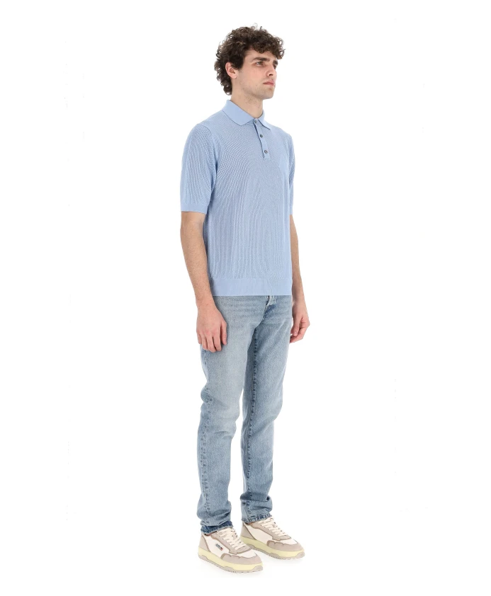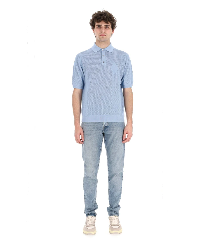 Поло из хлопкового пике с перфорированным узором. Ballantyne, синий