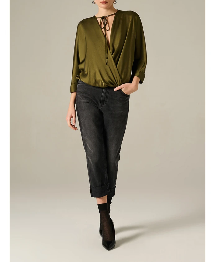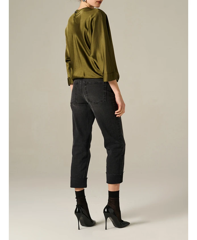 Джинсы-скинни от Manila Grace сочетают в себе минималистичный шик, облегающий силуэт и подвернутый низ, создавая современный образ с открытыми щиколотками, идеально подходящий для городских нарядов. Ключевые особенности: Черный цвет | Черный деним | Подвернутый низ | Выстиранная отделка | Размеры и посадка: Облегающий крой | Укороченная длина | Рост модели 180 см, размер 40.