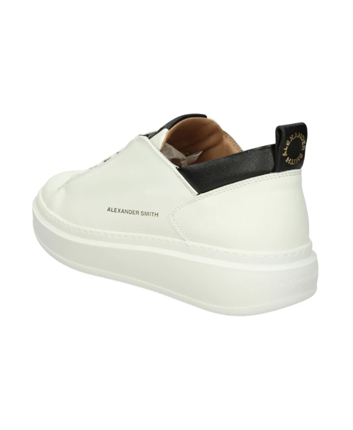 Ощутите идеальное сочетание спортивности и элегантности с кроссовками Wembley от Alexander Smith. Изготовленные из гладкой белой кожи с черными деталями, эти кроссовки излучают современность, обеспечивая комфорт, стиль и изысканность. Они имеют боковой логотип, бант сзади, съемную стельку, подошву высотой 40 мм и внутреннюю стельку толщиной 10 мм. Артикул: ASBAWYM-2311-WBK.