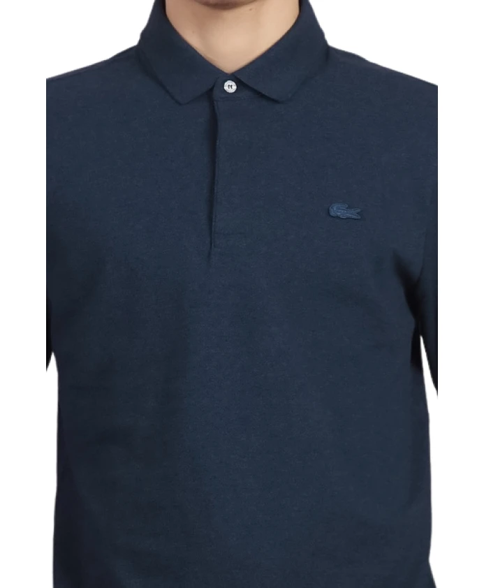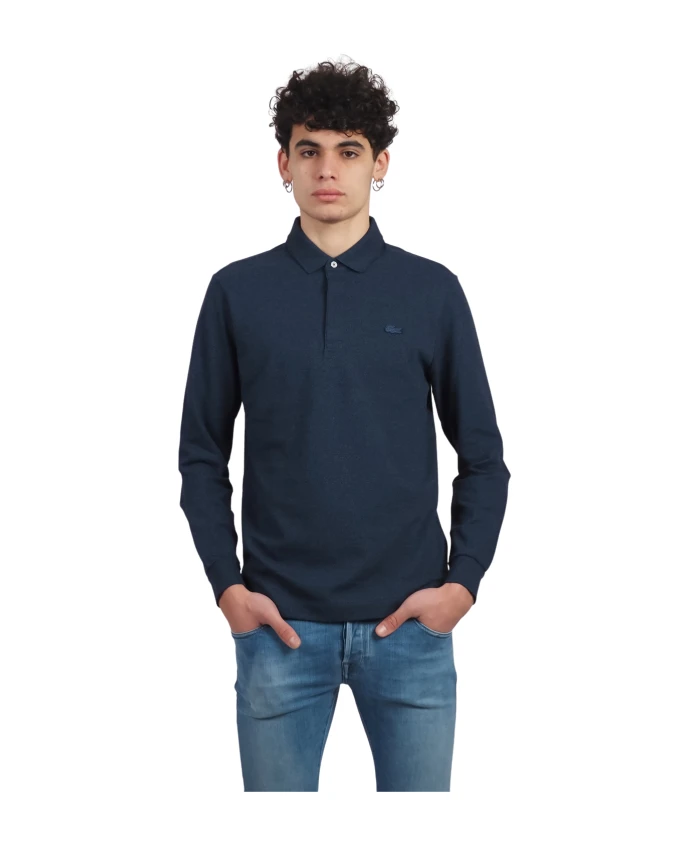 Синяя рубашка-поло с длинными рукавами Lacoste, синий
