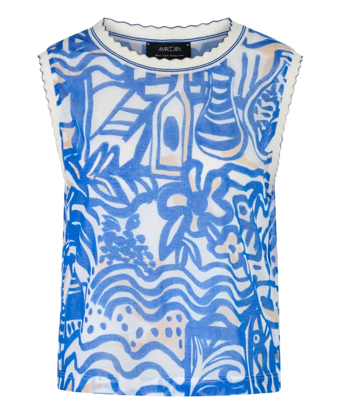 Вязаный топ с принтом Francis и оборками. Marc Cain, синий 23 436₽
