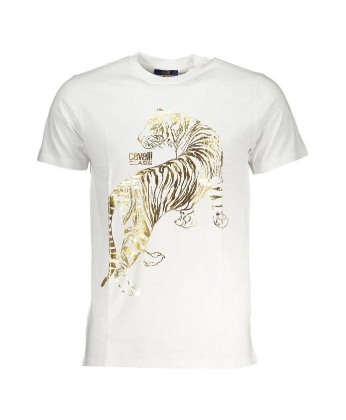 Футболка с принтом золотого тигра Cavalli Class, белый