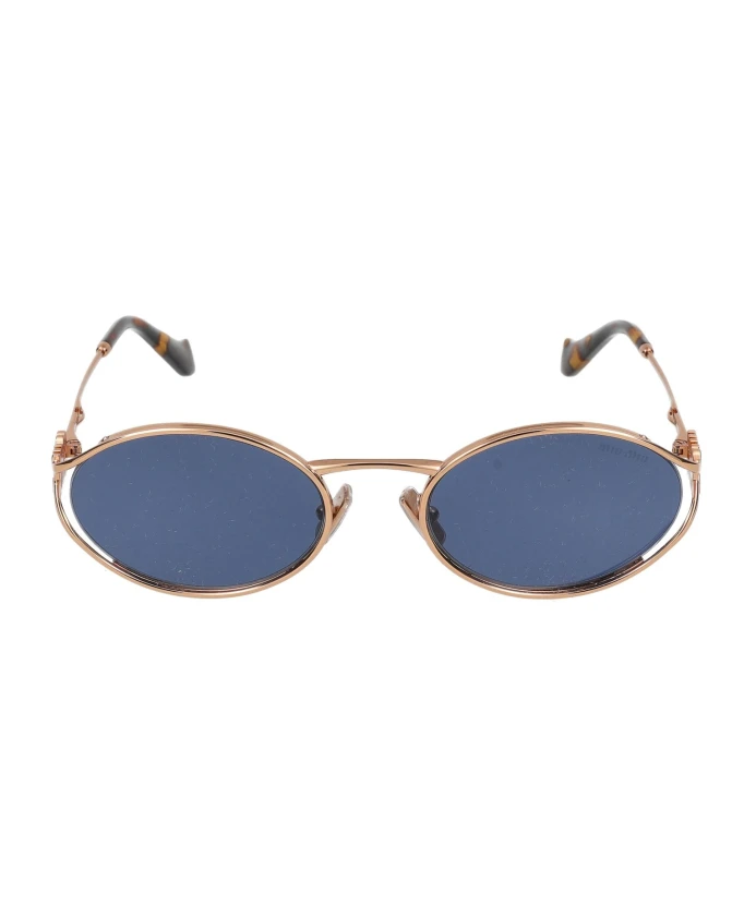 Подчеркните свой стиль с помощью этих солнцезащитных очков Miu Miu, выполненных в металлической оправе цвета розового золота и имеющих овальные линзы с синим оттенком. Логотип украшает дужки, а сами очки обеспечивают 100% защиту от UVA и UVB лучей. Регулируемые носовые упоры обеспечивают удобную посадку. Ширина линзы: 54 мм; длина переносицы: 21 мм; длина дужки: 125 мм.
