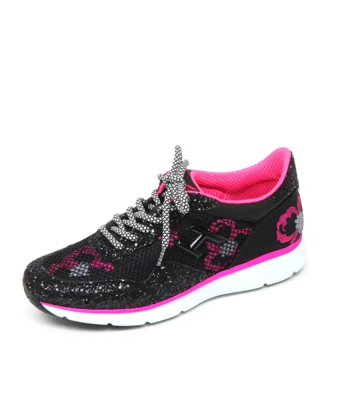 Розовые блестящие сетчатые туфли Hogan, черный 28 566₽