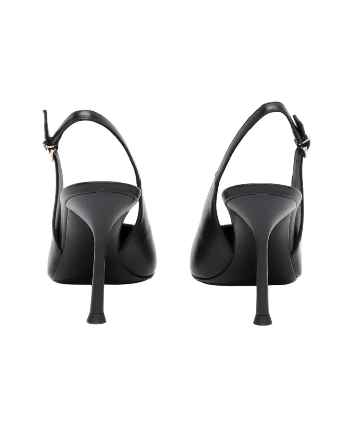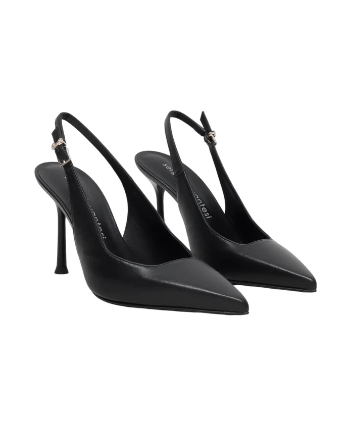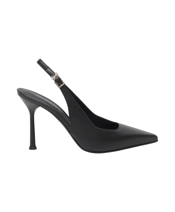 Туфли-лодочки Mascia от Sergio Levantesi - это элегантное воплощение изысканности. Изготовленные из гладкой черной кожи, они отличаются лаконичным силуэтом с заостренным носком и открытым каблуком. Регулируемый ремешок обеспечивает идеальную посадку, а шпилька добавляет роста и женственности. Изысканный стиль, идеально подходящий для вневременных и элегантных образов.