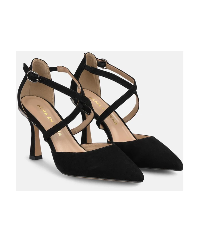 Туфли ALMA EN PENA с перекрещивающимися ремешками сочетают в себе перекрещивающиеся ремешки и заостренный носок, создавая элегантный и удобный вариант, подходящий как для работы, так и для стиля smart casual. Ключевые особенности: Черный цвет | Застежка на пряжку | Перекрещивающиеся ремешки | Заостренный носок | Низкий каблук | Размеры и посадка: Высота каблука: 9 см