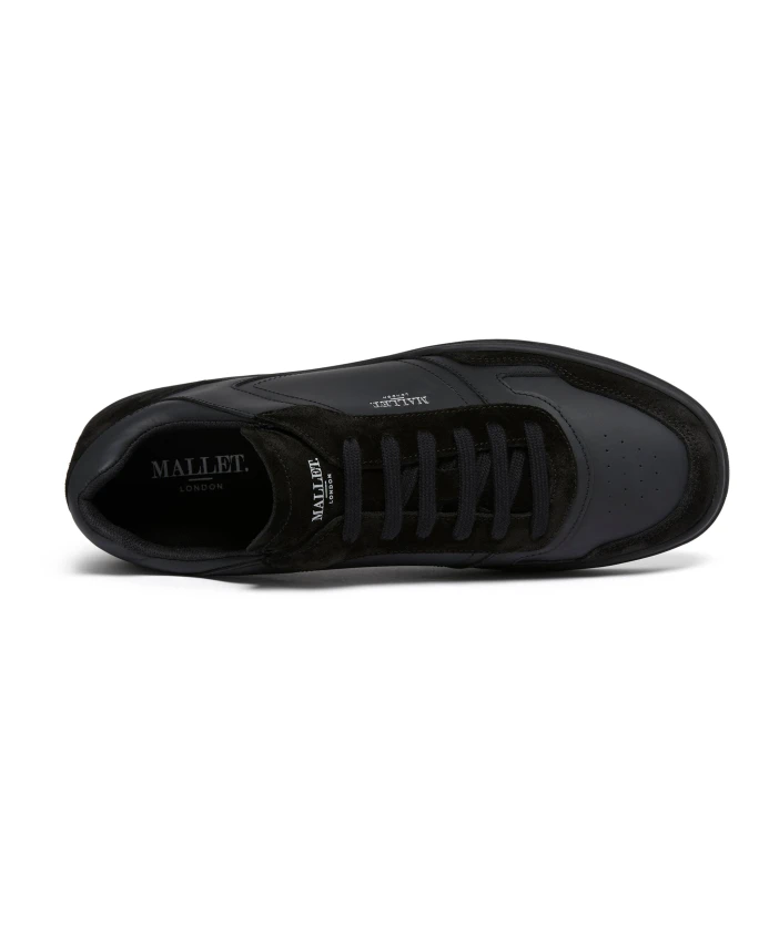 Пополните свою коллекцию обуви кроссовками Barnsley Triple Black от Mallet London. Эти кроссовки отличаются элегантным дизайном: верх из черной кожи, черные замшевые накладки и современный логотип из серебристой фольги. Черная текстильная подкладка и стелька обеспечивают комфорт, а полностью черная подошва добавляет нотку роскоши. Идеально подойдут для любого случая.