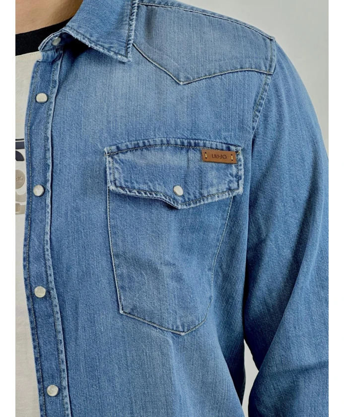 Джинсовая рубашка Liu Jo для мужчин - это вневременной элемент гардероба. Изготовленная из денима, с застежкой на пуговицы и карманами, эта базовая рубашка идеально подходит для повседневного, но стильного образа. Идеальный вариант для мужчины, ищущего универсальную и качественную одежду. Длинные рукава. Базовая джинсовая рубашка с застежкой на пуговицы и карманами.