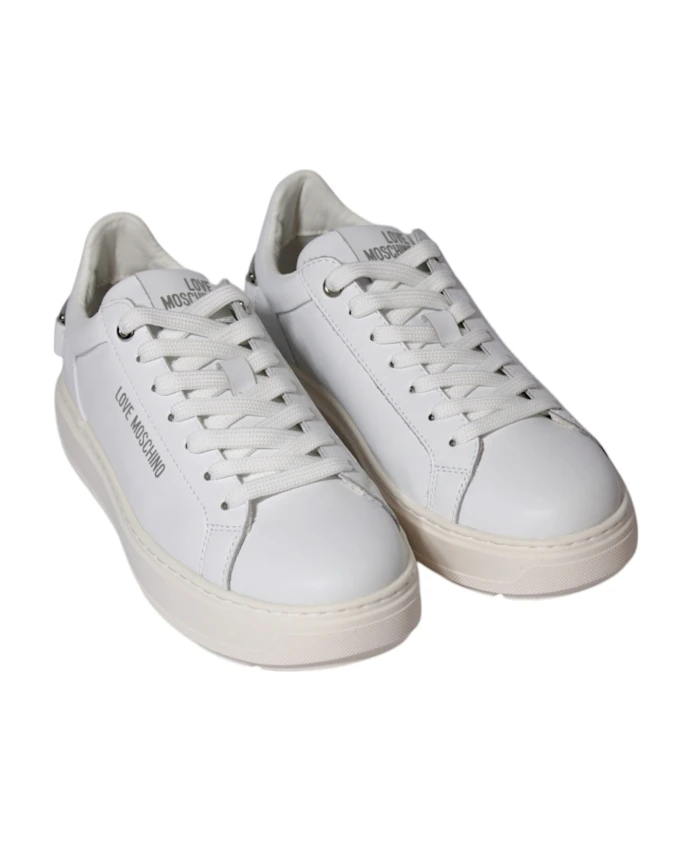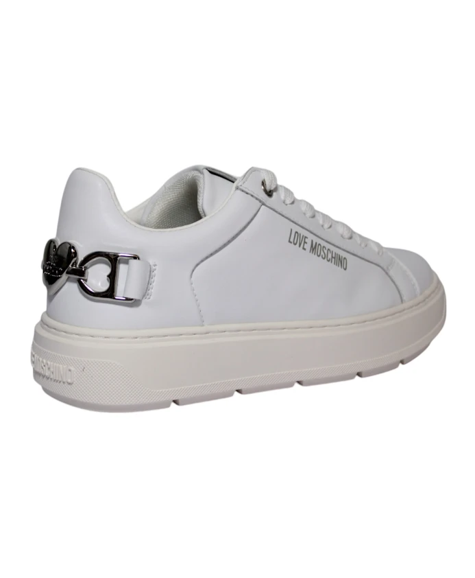 Откройте для себя кроссовки Love Moschino - стильное дополнение к любому повседневному гардеробу, отличающееся элегантным дизайном и удобной посадкой. Ключевые особенности: Белый цвет | 100% телячья кожа | Деталь в виде цепочки с логотипом | Размер и посадка: стандартная | Состав и уход: 100% телячья кожа | 90% полиэстер | 10% полиуретан | Протирать влажной тканью.