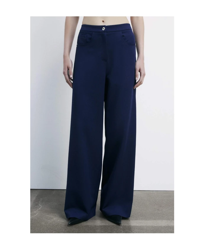 Подчеркните свой повседневный шик с помощью женских брюк-палаццо Patrizia Pepe синего цвета. Изготовленные из технологичной эластичной ткани для комфорта и идеальной посадки, эти брюки с широкими штанинами украшены джинсовыми пуговицами и заклепками для дополнительного стиля. Идеально подходят для создания стильного и современного образа. Модель носит размер IT 40.