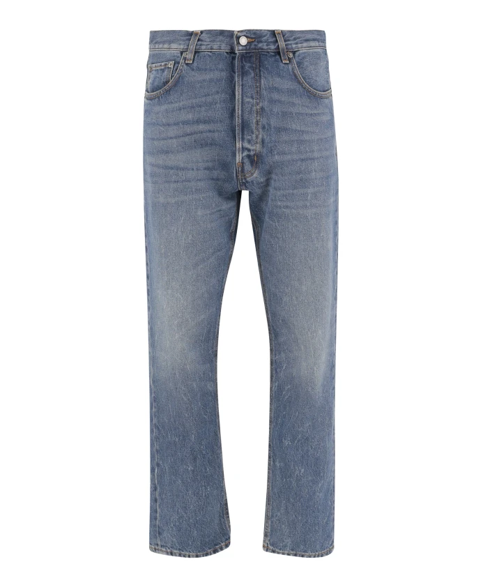Обновите свой гардероб с помощью этих классических джинсов прямого кроя от Haikure. Изготовленные в Италии из 100% хлопкового денима, эти джинсы имеют эффект потертости, застежку-молнию спереди и классический дизайн с пятью карманами. Прямой крой и пояс с петлями для ремня обеспечивают удобную посадку. Идеально подходят для повседневного стиля современного мужчины.