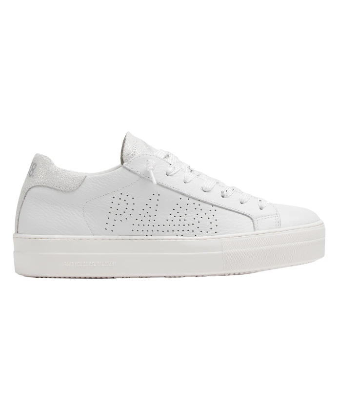 Поднимите свой стиль на новый уровень с кроссовками Thea White/Opal от P448. Модель выполнена из белой кожи с бежевой металлизированной замшей на каблуке, белыми шнурками и фирменной резиновой подошвой на платформе P448, что придает ей игривый вид. Примечание: эта модель на платформе маломерит, поэтому, если вы находитесь между размерами, закажите на размер больше.