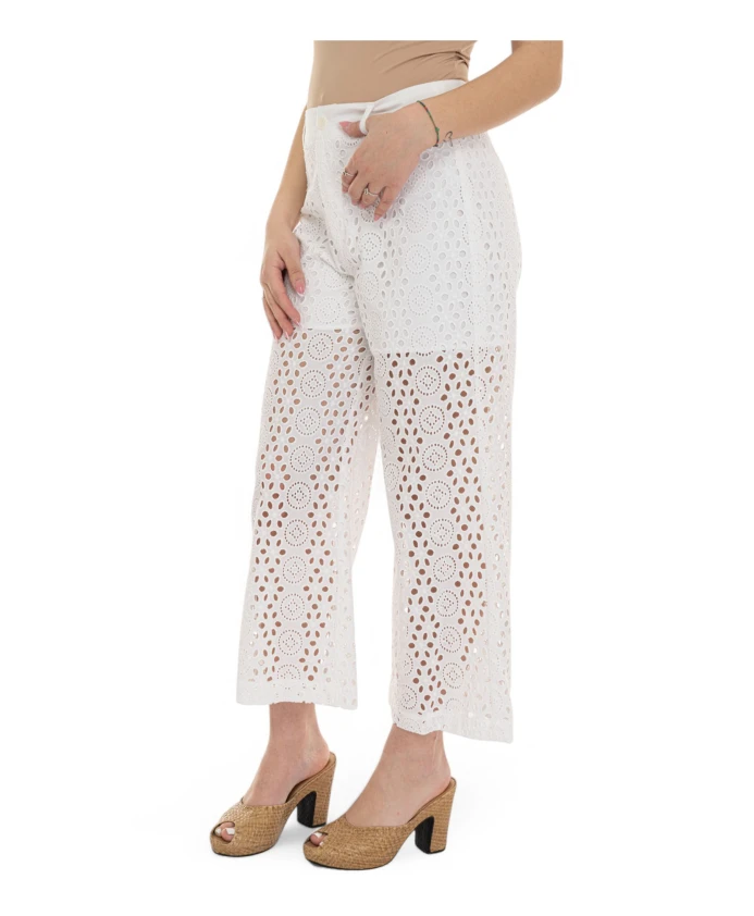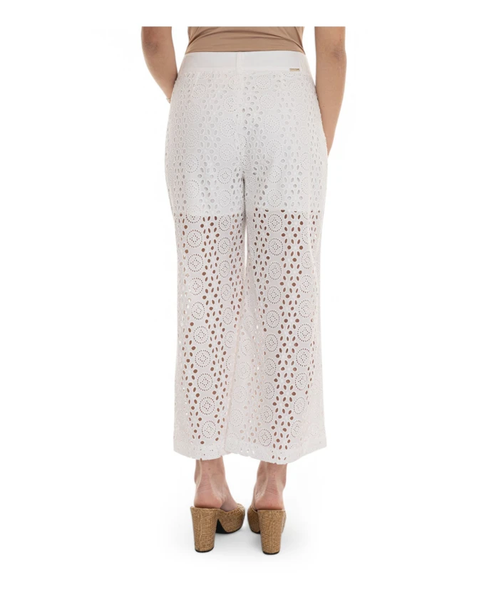 Подчеркните свой стиль с помощью этих укороченных брюк с широкими штанинами от Liu Jo, украшенных изысканной английской каймой. Брюки со средней посадкой на талии и прямым кроем сочетают в себе элегантность и комфорт. Изготовленные из 100% хлопка, они имеют язычок с логотипом, застежку на пуговицы и потайную молнию. Незаменимый элемент гардероба для модной женщины.