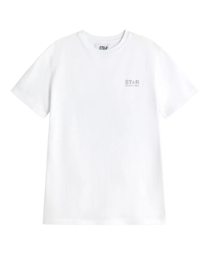 Футболка Golden Goose Star сочетает в себе классический хлопковый крой, блестящий логотип и большую блестящую звезду, создавая изысканный повседневный образ. Ключевые особенности: Белый | Хлопок | Круглый вырез | Короткие рукава | Блестящий логотип на груди | Большая блестящая звезда на спине | Размеры и посадка: Стандартный крой | Состав ткани и уход: 100% хлопок