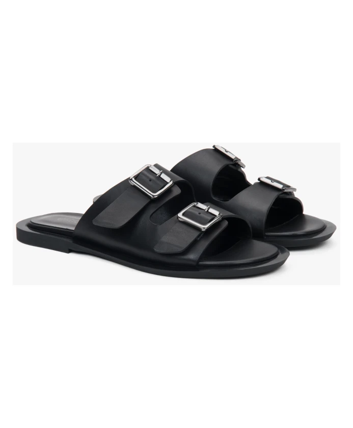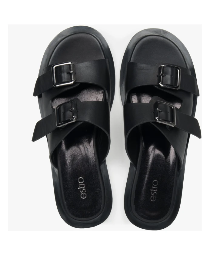 Черные кожаные сандалии с двумя ремешками Estro, черный
