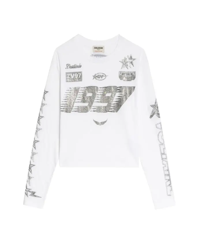 Футболка Zadig & Voltaire Io - это хлопковая футболка с короткими и длинными рукавами, украшенная стразами и графическим принтом. Она добавит элегантности повседневным образам. Ключевые особенности: Белый | Хлопок | Круглый вырез | Длинные рукава | Украшение стразами | Графический принт | Размер и посадка: Короткая длина | Состав материала и уход: Хлопок | Стразы