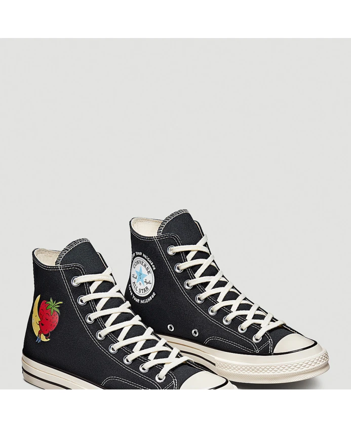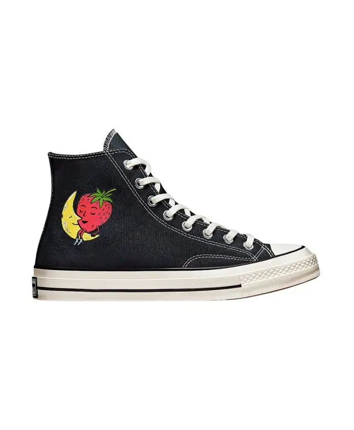 Компания Converse сотрудничает с Sky High Farm Workwear, чтобы поддержать миссию фермы по расширению доступа к здоровой, свежей пище и инвестированию в пути к продовольственной независимости. Кроссовки Strawberry Moon Chuck 70 изготовлены из хлопка с джинсовой текстурой, имеют круглый носок, шнуровку и логотип на пятке. Это описание было переведено автоматически.
