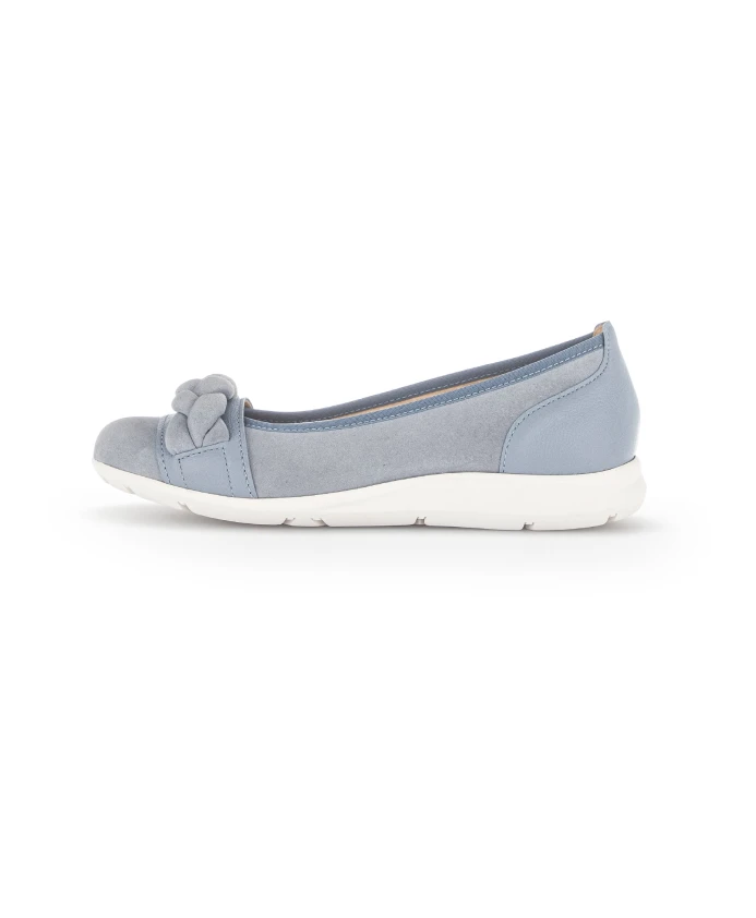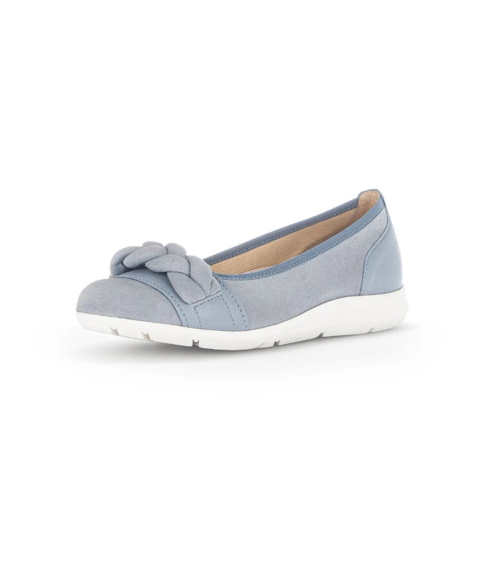 Почувствуйте комфорт этих балеток Gabor, созданных с использованием легкой ткани для комфорта в течение всего дня. Текстильная и кожаная подкладка обеспечивает идеальную посадку и превосходную поддержку подъема стопы и ахиллова сухожилия. Ключевые особенности: Синий | Замша | Эластичная ткань спереди | Мягкие кожаные вставки | Размер и посадка: Стандартный размер