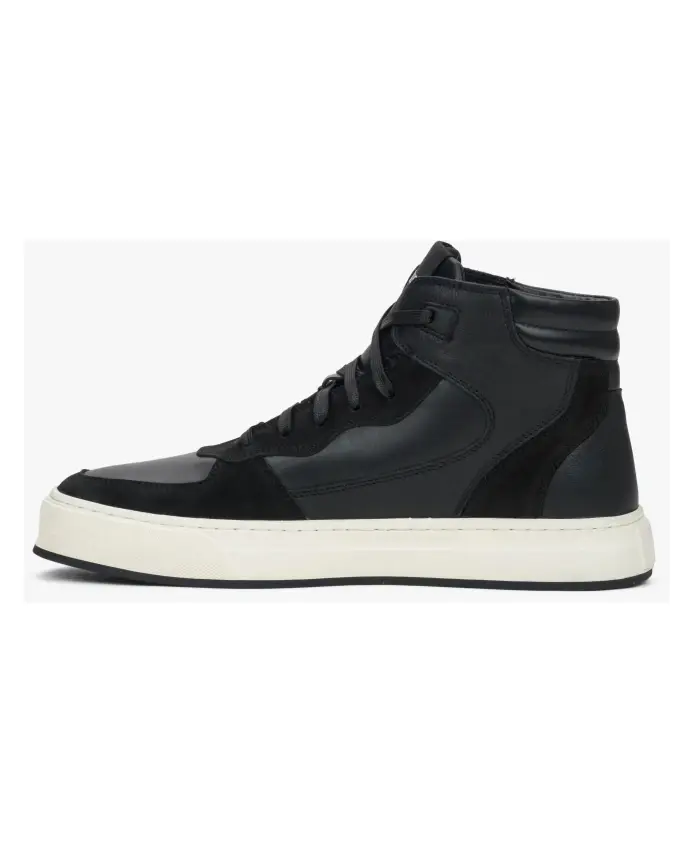 Эти элегантные черные высокие кроссовки от Estro изготовлены из высококачественной итальянской натуральной кожи и нубука, обеспечивая тепло и стильный вид в осенне-зимний сезон. Основные характеристики: Черный цвет | Итальянская натуральная кожа и нубук | Шнуровка | Фланелевая подкладка для тепла | Логотип бренда на язычке | Размер и посадка: Стандартная посадка