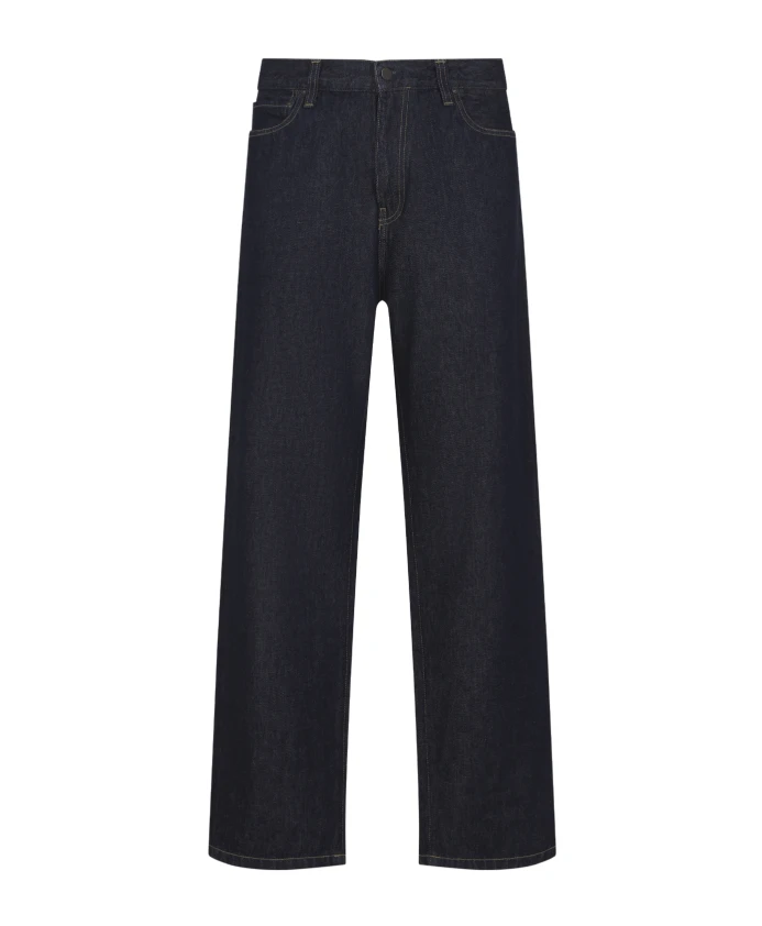 Подчеркните свой стиль с помощью этих хлопковых брюк Carhartt Wip Aaron Blue. Изготовленные из темно-синего хлопкового денима, эти джинсы прямого кроя имеют стандартную посадку на талии, 5 карманов, шлевки для ремня, застежку на пуговицу и молнию спереди, а также этикетку из искусственной кожи сзади. Насладитесь комфортом и стилем стандартного зауженного кроя.