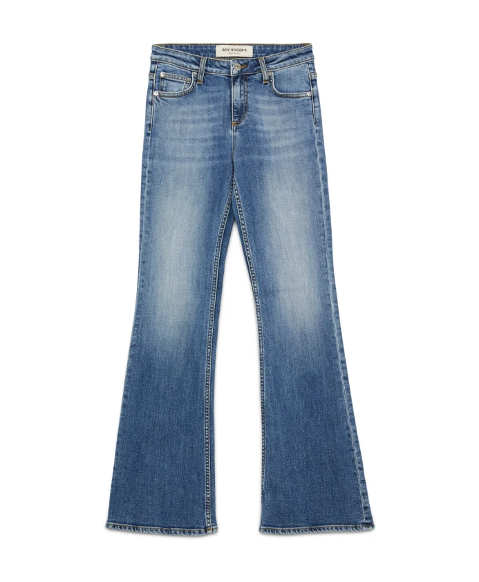 Подчеркните свой стиль с помощью этих женских расклешенных джинсов Roy Roger's синего цвета. Высокая талия и нежная обработка ткани создают изысканный и модный образ. Расклешенные штанины обеспечивают привлекательный силуэт, идеально подходящий для любого случая. Сочетайте их с кроссовками для повседневного образа или с ботильонами для женственного акцента.