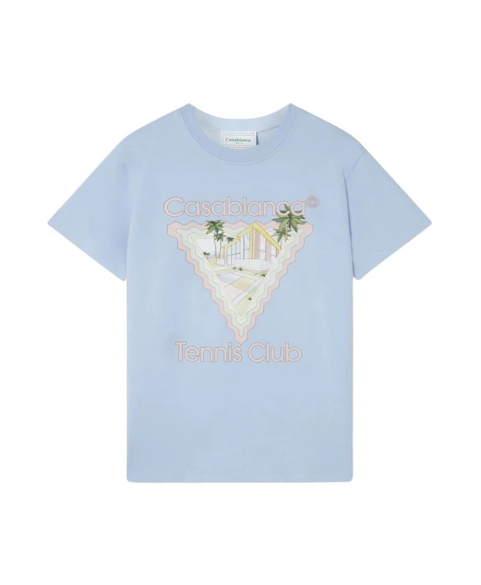 Футболка Casablanca с круглым вырезом, сочетающая классический круглый вырез с ненавязчивым принтом теннисного клуба для создания расслабленного повседневного образа в светло-голубых тонах. Ключевые особенности: Светло-голубой | Синий | Хлопок | Круглый вырез | Принт теннисного клуба | Размеры и посадка: Свободный крой | Состав материала и уход: 100% хлопок
