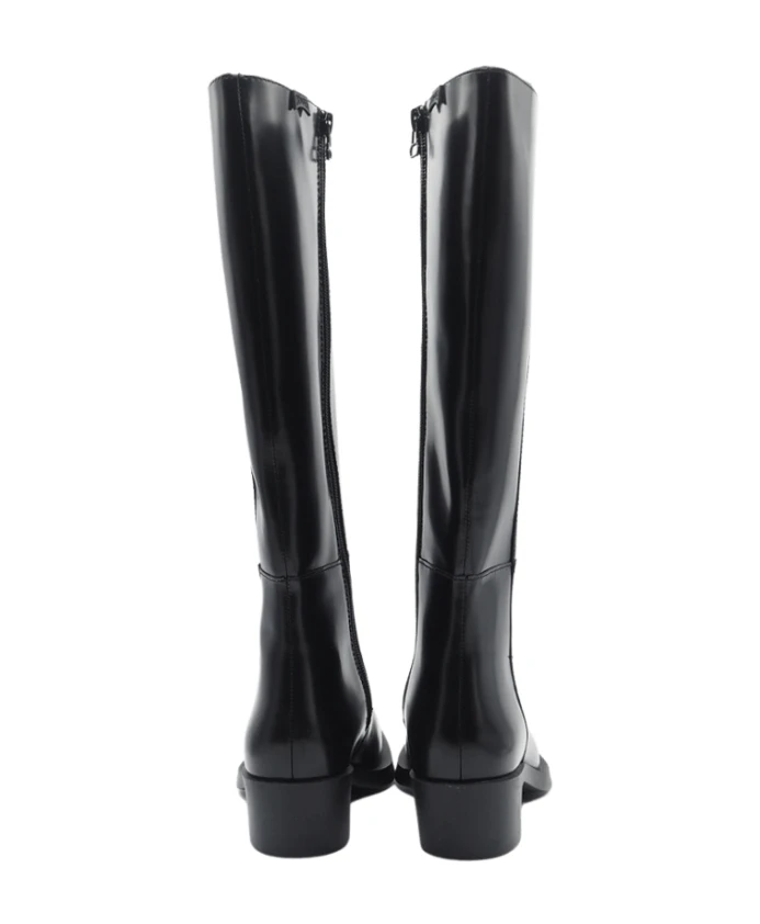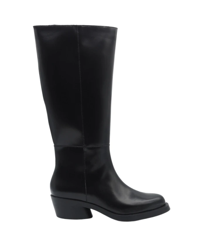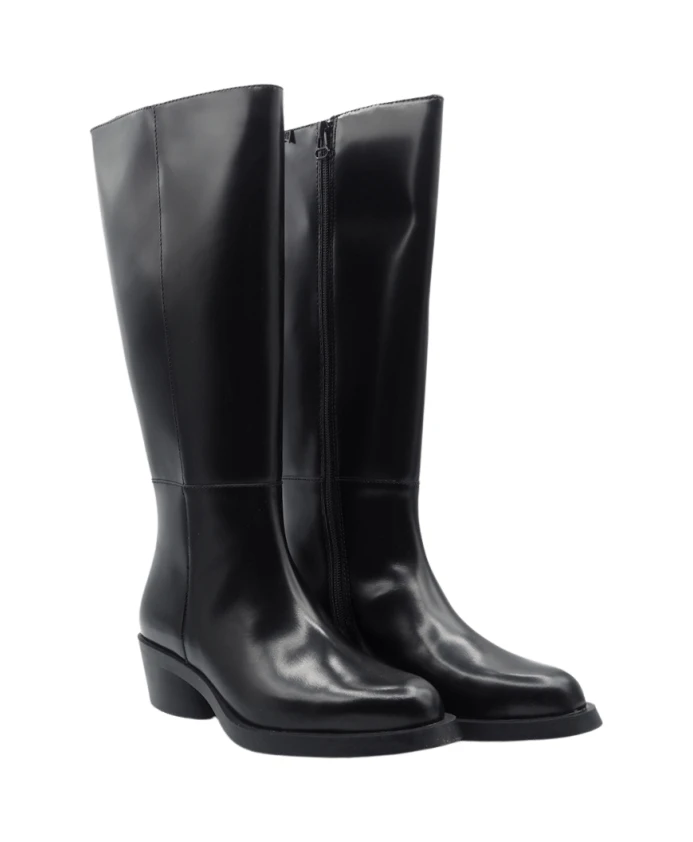 Женские ковбойские сапоги Camper глянцевого черного цвета. Изготовлены из телячьей кожи с полуматовой отделкой. Имеют техасский каблук, застежку-молнию сбоку и стельку OrthoLite для оптимальной амортизации. Резиновая подошва изготовлена из 20% переработанных материалов. Код товара: K400632. Нажмите здесь, чтобы посмотреть другие модели женской зимней обуви.
