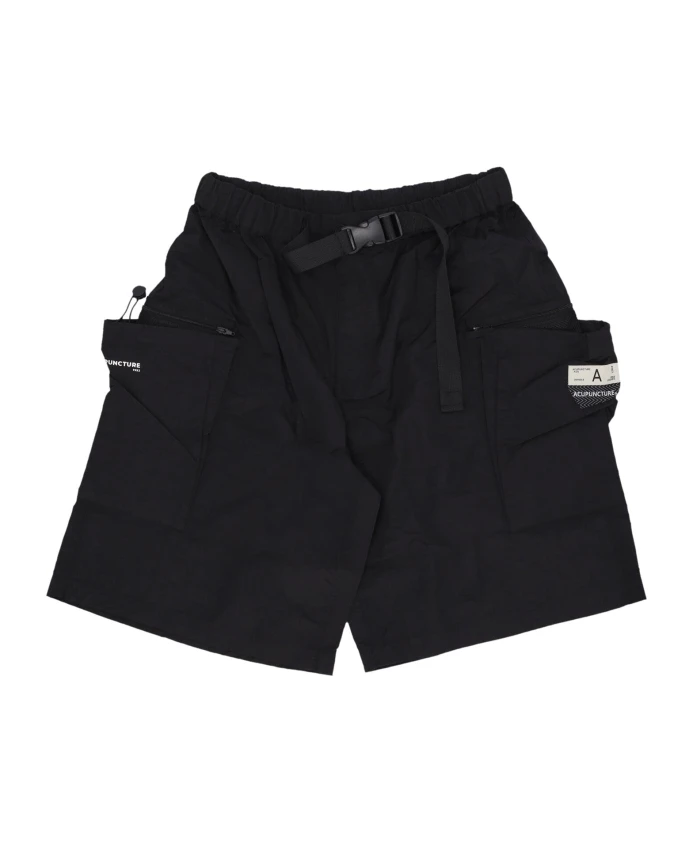 Мужские повседневные шорты ACUPUNCTURE с эластичным поясом, застежкой на пуговицу и молнию, а также ремнем с зажимами. Имеют боковые карманы, накладные карманы с двойной застежкой, широкие штанины и ребристый низ. Изготовлены из 100% нейлона. Рекомендуется ручная или машинная стирка в соответствии с инструкцией на этикетке. Логотип ACUPUNCTURE на карманах.