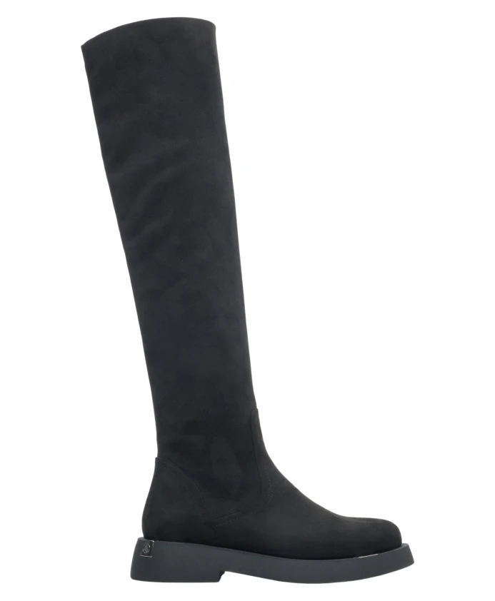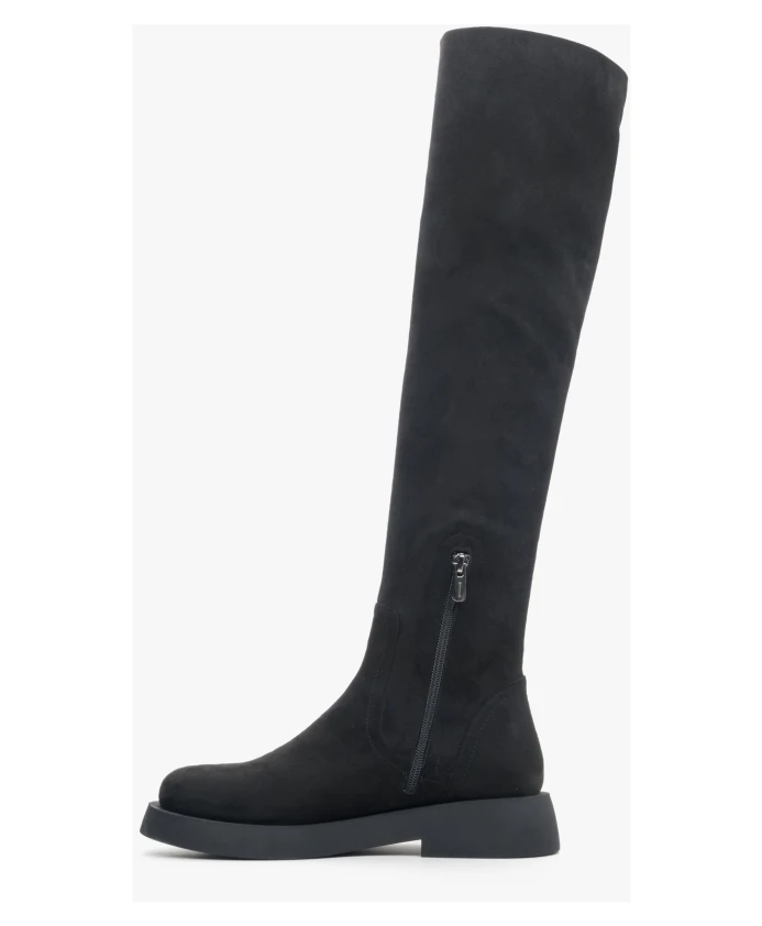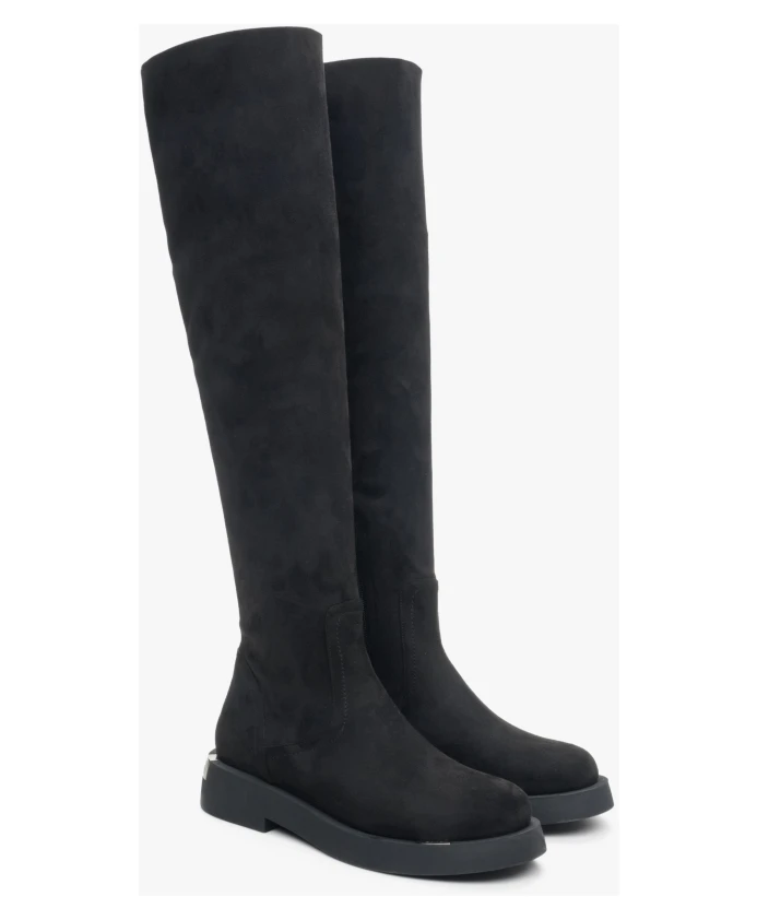 Черные велюровые сапоги выше колена Estro, черный