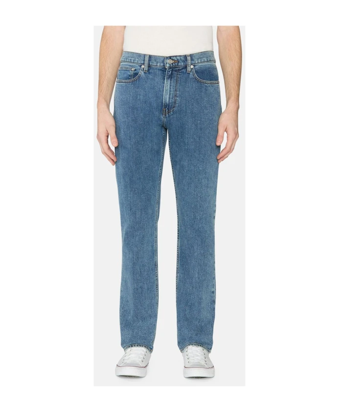 Подчеркните свой повседневный стиль с помощью этих современных прямых джинсов от Frame. Модель со средней посадкой на талии и прямым кроем штанин, классическим дизайном с пятью карманами, мягкой эластичной джинсовой тканью для максимального комфорта и выцветшим светло-голубым цветом для элегантного и непринужденного образа. Состав: 97% хлопок / 3% эластан.