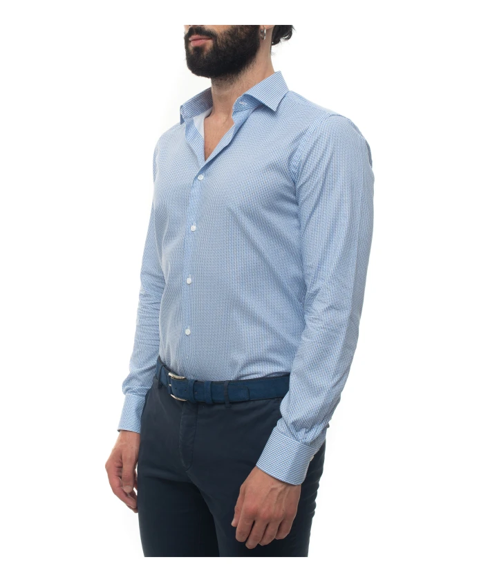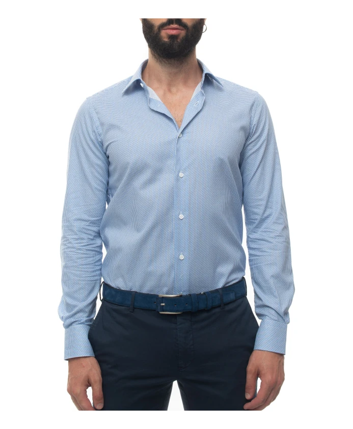 Рубашка Cârrel Casual Shirt - это итальянская рубашка на пуговицах, сочетающая итальянский воротник с эффектным геометрическим узором для создания изысканного образа в стиле smart-casual. Основные характеристики: Синий | Небесно-голубой | Хлопок | Итальянский воротник | Геометрический узор | Размеры и посадка: Приталенный крой | Состав и уход: 100% хлопок