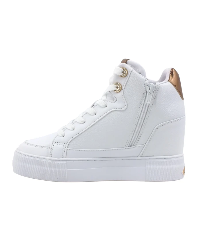 Кроссовки Guess, сочетающие повседневный комфорт со встроенной танкеткой для увеличения роста. Идеально подходят для повседневных образов из осенне-зимней коллекции. Ключевые особенности: Белый | Искусственная кожа | Танкетка | Низкий силуэт | Размеры и посадка: Танкетка: 9 см | Состав и уход: Верх: Искусственная кожа | Подкладка: Ткань | Подошва: Резина