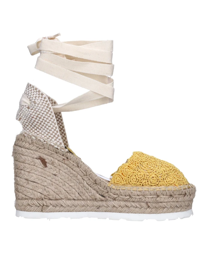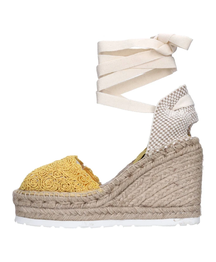 Подчеркните свой стиль с помощью этих туфель на танкетке Fabi, идеально подходящих для придания элегантности любому наряду. Верх из ткани и прочная резиновая подошва обеспечивают комфорт и стиль. Ключевые особенности: Желтый | Ткань | Подкладка из веревки | Тканевые шнурки | Состав и уход: Верх из ткани | Резиновая подошва | Подкладка из ткани и веревки