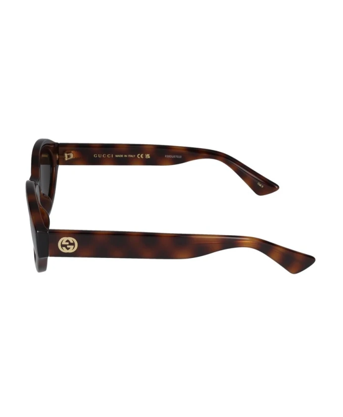 Подчеркните свой стиль с помощью этих овальных солнцезащитных очков Gucci с оправой из ацетата с принтом «Гавана» и коричневыми нейлоновыми линзами. Эти очки, разработанные специально для женщин, имеют тонкую оправу, золотистый логотип по бокам и обеспечивают 100% защиту от УФ-излучения. Ширина линзы: 53 мм; длина переносицы: 22 мм; длина дужки: 140 мм.