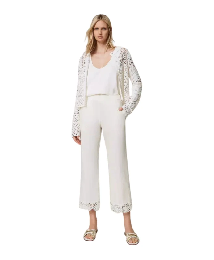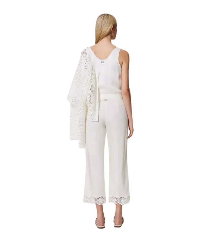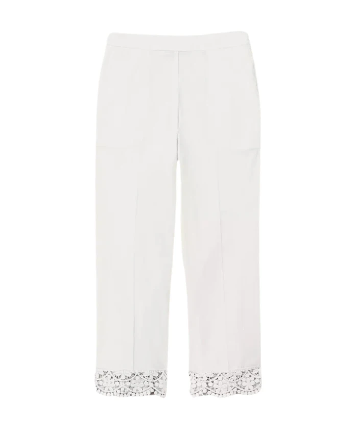 Белые укороченные хлопковые брюки со шнуровкой Twinset, белый