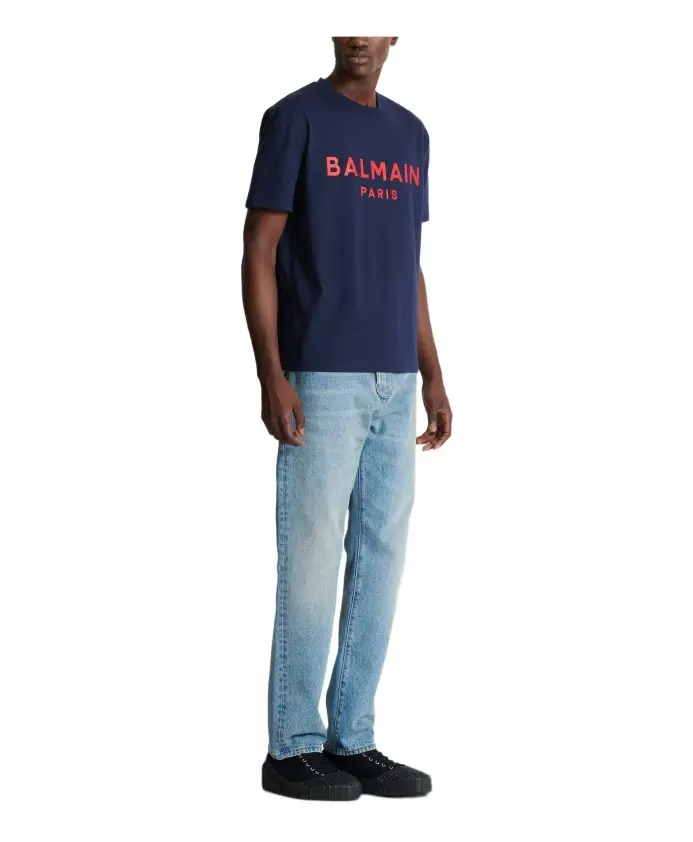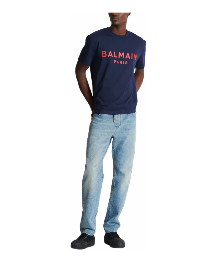 Футболка с принтом Balmain Paris. Круглый вырез с ребристой отделкой. Короткие рукава. Контрастный логотип Balmain Paris на передней части. Стандартный крой. Рост модели 190 см, размер M. Основной материал: 100% хлопок. Сделано в Португалии. Артикул: FH1EG000BB73. 100% хлопковых волокон в этом изделии выращены органическим способом и сертифицированы.