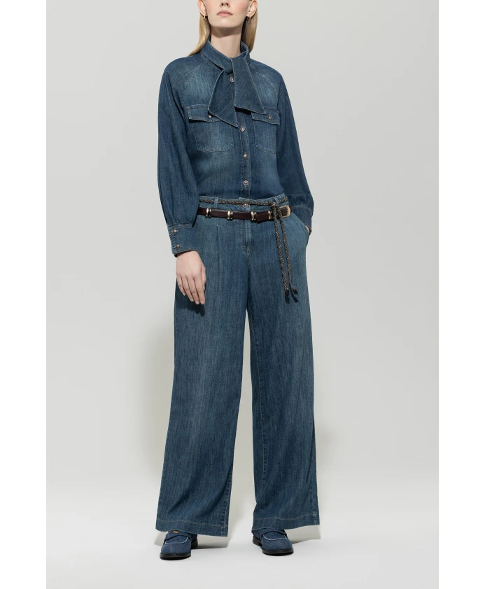 Широкие джинсовые брюки с эффектом отбеливания Luisa Cerano, синий 25 441₽