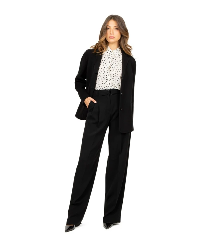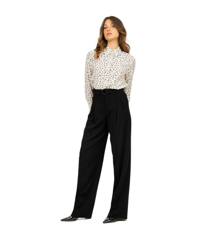 Обновите свой гардероб с помощью этих широких брюк от Max Mara Studio для женщин. Изготовленные из плотной ткани кади, эти черные струящиеся брюки имеют слегка зауженный силуэт, двойные складки спереди, боковые карманы и пояс в тон с двойным металлическим кольцом. Застежка на высокую талию, молнию и крючок. Состав: 71% триацетат и 29% полиэстер.