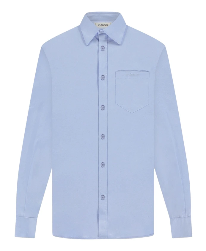 Дополните свой формальный гардероб этой классической синей рубашкой FLÀNEUR. Изготовленная из 100% хлопкового поплина, эта рубашка стандартного кроя отличается вневременным дизайном. Доступна в размере L, идеально подходящем для мужчин. Рост модели 188 см. Оцените качество продукции, сертифицированной по стандарту GOTS, от сырья до маркировки.