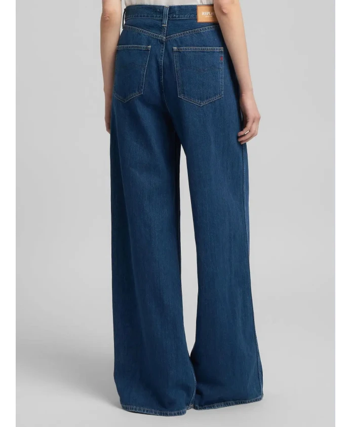 Женские джинсы Replay Wide с двумя передними французскими карманами и двумя задними накладными карманами, украшенными фирменной строчкой «крыло чайки», один из которых вышит буквой R. Застежка на пуговицу и молнию. Длина штанины: 33 см. Характеристики: Материал: 100% хлопок. Не отбеливать. Не сушить в сушильной машине. Не подвергать химчистке.