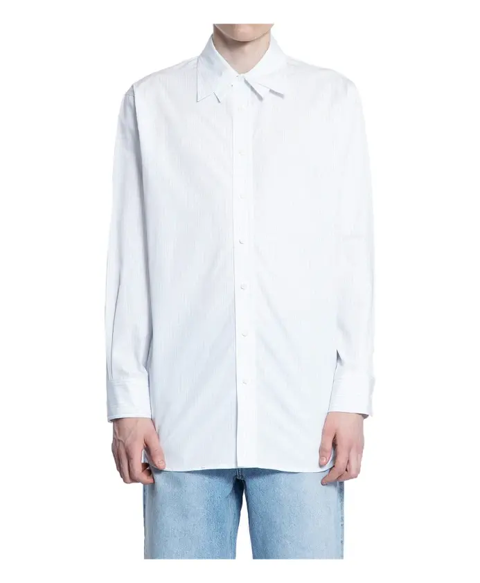 Дополните свой формальный образ этой светло-голубой полосатой рубашкой из хлопкового поплина от Recto. Она имеет классический многослойный воротник, застежку на пуговицы, приспущенные плечи, длинные рукава с манжетами на пуговицах, складки на спине и закругленный низ. Рост модели 186 см, обхват груди 88 см, талия 72 см, бедра 92 см, размер S.