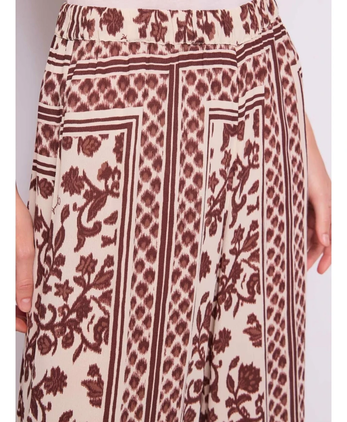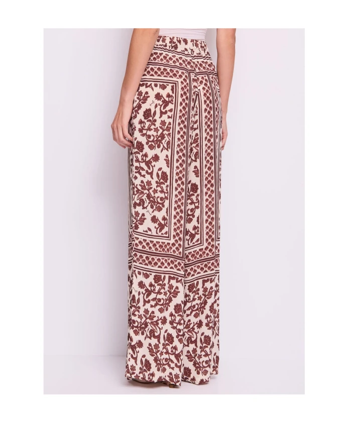 Подчеркните свой стиль с помощью этих бордовых широких брюк-палаццо от Gaudi. Изготовленные из креповой ткани с цветочным принтом и эластичным поясом для идеальной посадки. Эти струящиеся брюки из 100% вискозы идеально подойдут для создания изысканного и модного образа. Выберите эти удобные и элегантные брюки для создания стильного наряда.