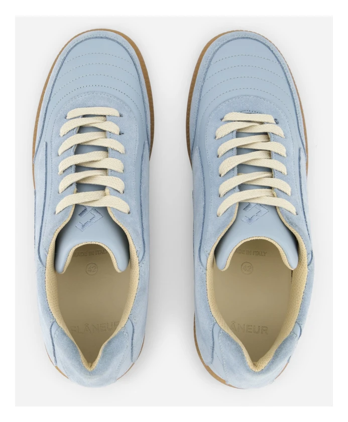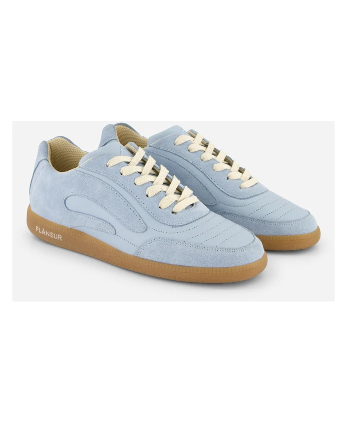 Подчеркните свой стиль с помощью этих кроссовок FLÀNEUR в силуэте Tivoli Runner, отличающихся замшевыми вставками, кожаным верхом и элегантной подошвой с деталями в стиле «фланер». Светло-голубой цвет добавляет изысканности. Изготовленные из кожи, они немного маломерят, поэтому для идеальной посадки рекомендуем заказывать на размер больше.