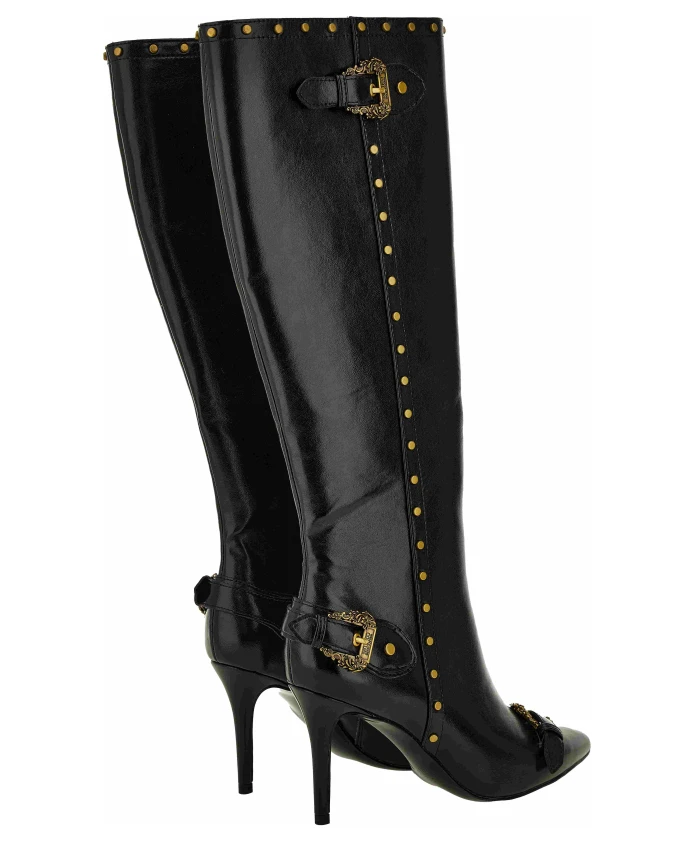 Ботильоны Versace на каблуке в элегантном черном силуэте, созданные для изысканного повседневного или вечернего образа. Поиск по коду 79VA3S58ZSC35899 не дал точного совпадения; похожие товары есть в наличии, но название модели и характеристики материала не удалось достоверно проверить, поэтому эти поля пусты. Ключевые особенности: Черный
