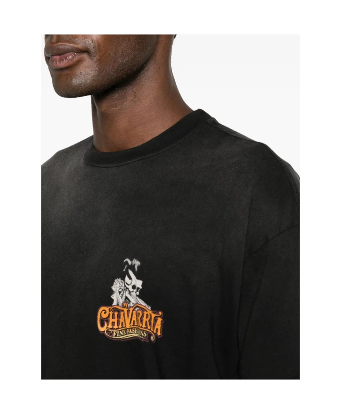 Футболка Willy Chavarria с ярким логотипом на груди и графическим принтом на спине - привлекательный вариант для повседневной носки. Классический силуэт с круглым вырезом идеально подходит для создания повседневного образа. Ключевые особенности: Черный цвет | Круглый вырез | Короткие рукава | Логотип на груди | Графический принт на спине