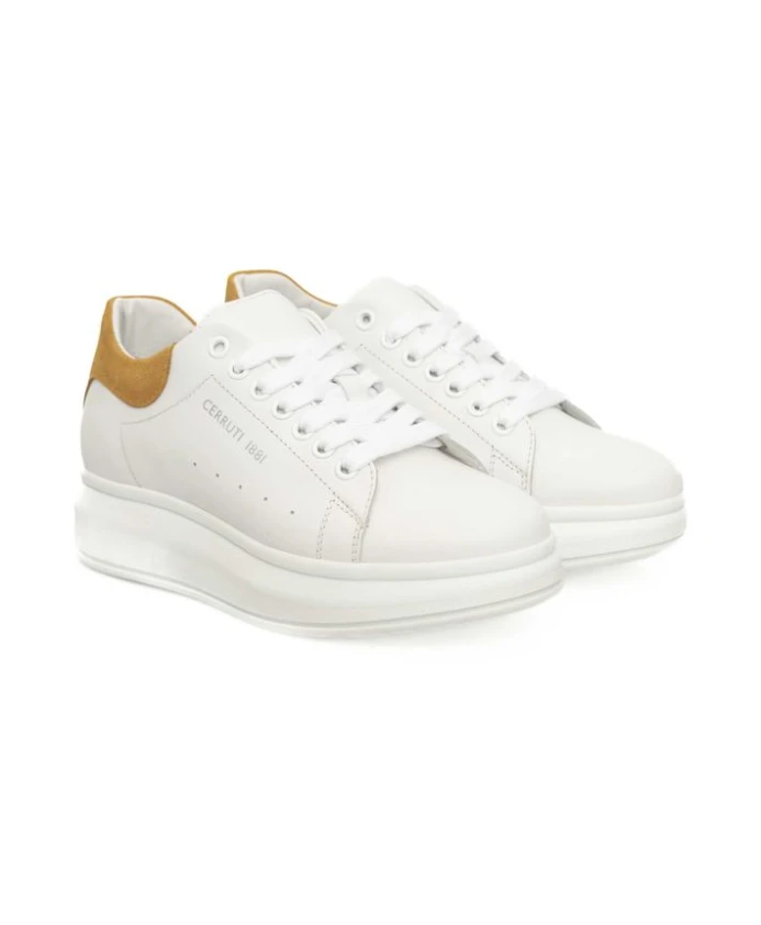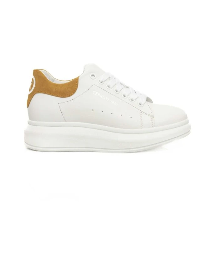 Кроссовки Cerruti 1881 на платформе, изготовленные из высококачественной коровьей кожи, с эффектной платформенной подошвой и фирменным логотипом - элегантные повседневные кроссовки, сочетающие в себе роскошь и городской стиль. Ключевые особенности: Белый цвет | Коровья кожа | Платформенная подошва | Логотип | Состав и уход: Коровья кожа