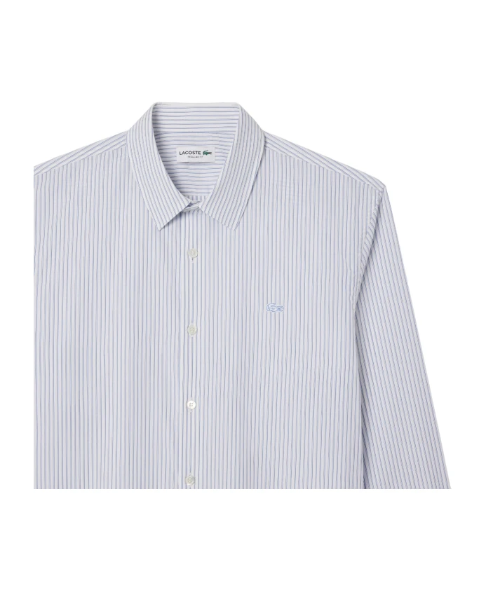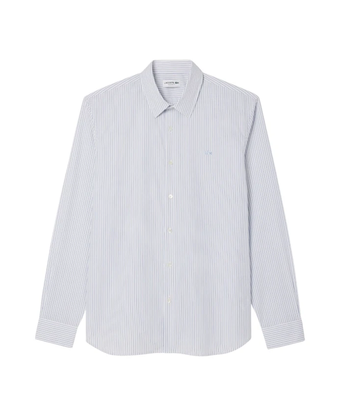 Подчеркните свой повседневный стиль с помощью этой синей хлопковой рубашки из поплина от LACOSTE. Прямой крой, стандартная посадка, усиленный отложной воротник, перламутровые пуговицы и элегантный полосатый дизайн делают эту рубашку идеальным выбором для непринужденной элегантности. Удобная складка на спине добавляет нотку изысканности.